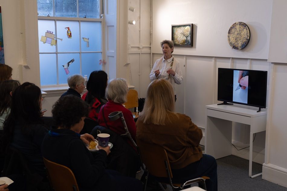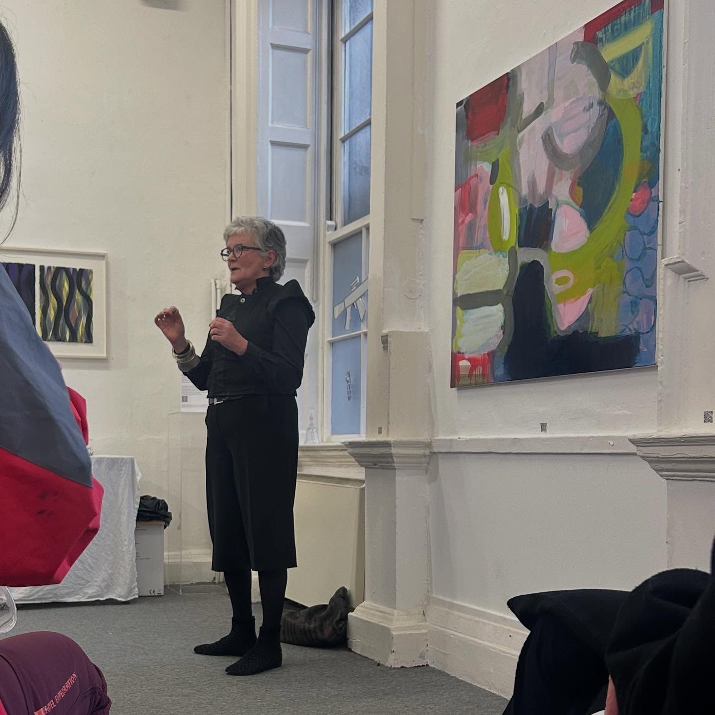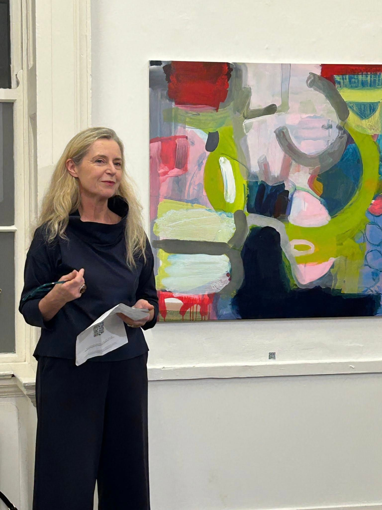 Photo: Christina Kennedy, Senior Curator and Head of Collections at IMMA, guest speaker at the opening of our group show 'Ode to Giants'. The work partly featuring in the photo is Mary A. Fitzgerald's The Fancy, acrylic on canvas, 100x100cm. Acquired during the weekend by the OPW for the State Art Collection.