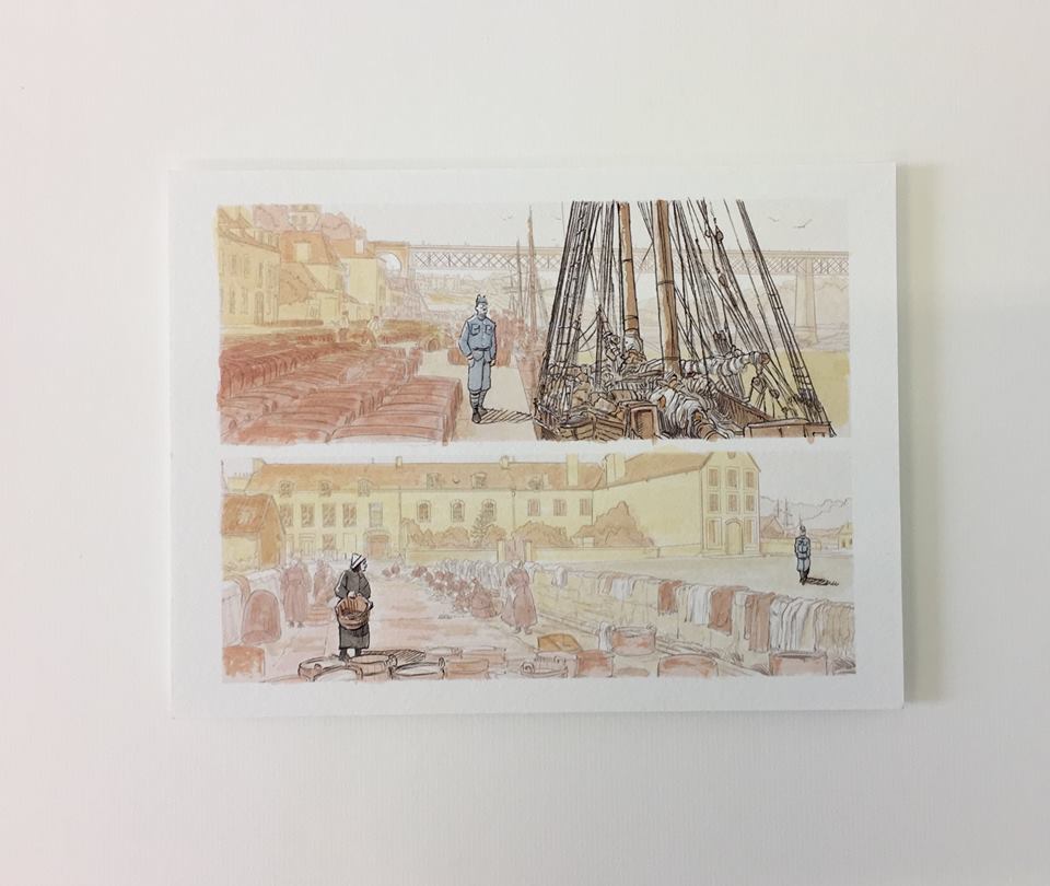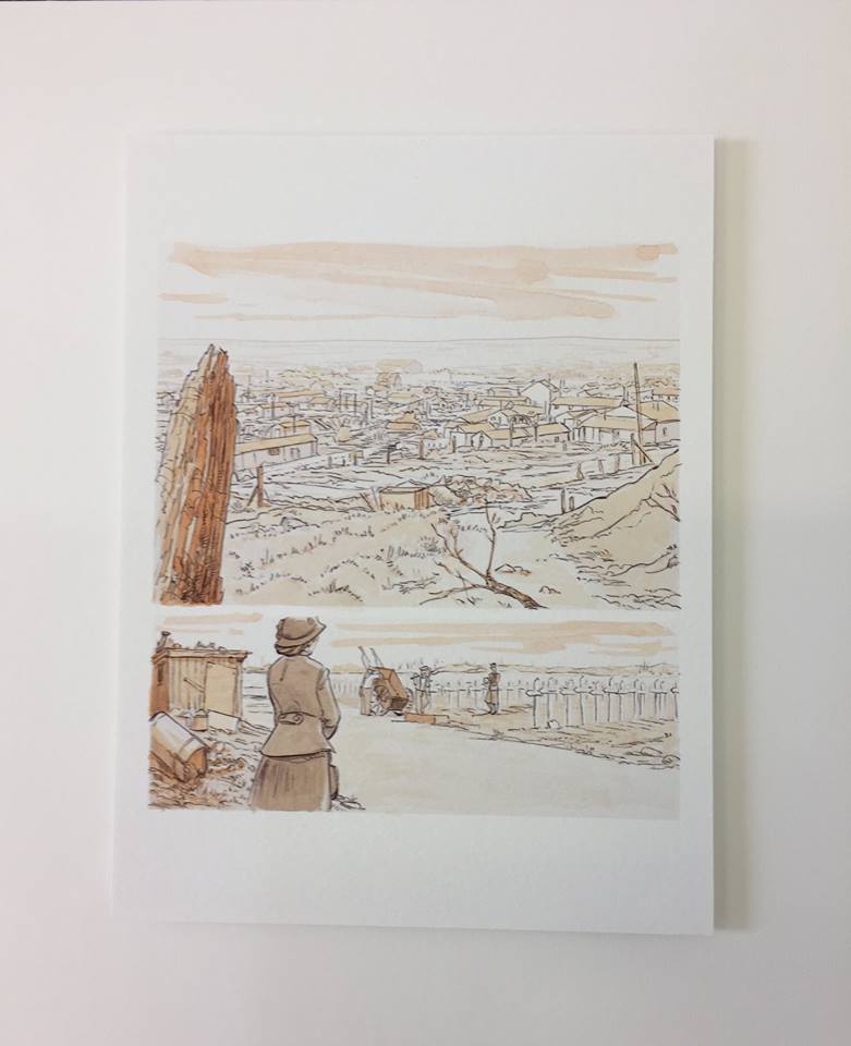"In conversation, Olivier Cornet and Léo Régeard (who works as a CG artist in film and TV) discovered that both their great grand uncles had served in the first World War – and documented their experiences, Cornet’s relation, François Bost, as a photographer, and Régeard’s in copious notebook entries. This exhibition plus comic book stems from that connection. Plus, the Graphic Studio’s Robert Russell has made three photo intaglios (edition of 25 each) from Bost’s original photographs."