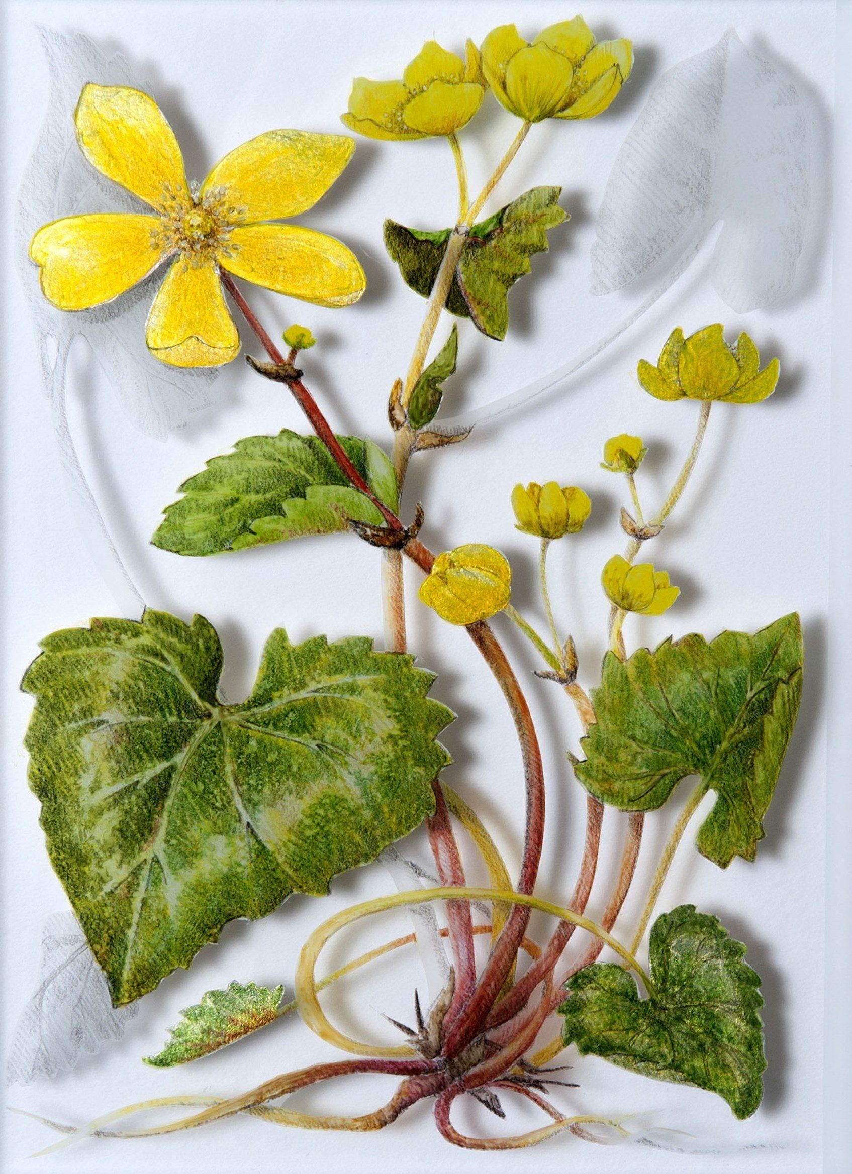 'Wood Anemone', verre églomisé with gold leaf, 21x15 cm (panel 42x39cm), sold
