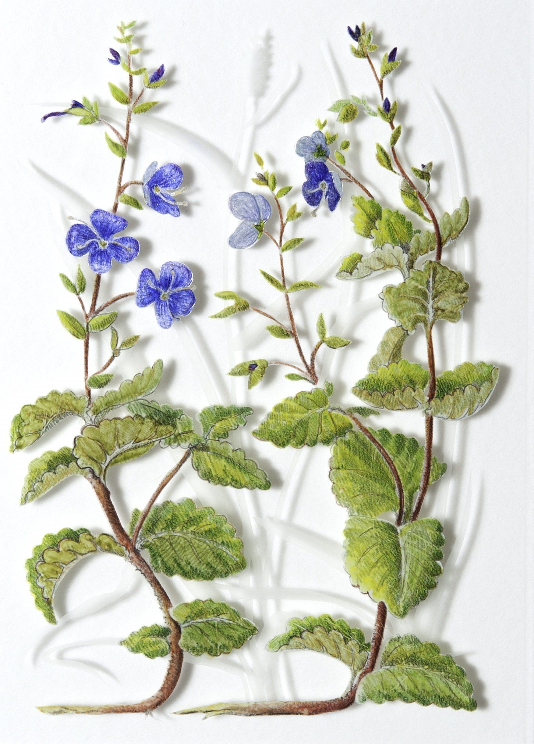 'Speedwell', verre églomisé with gold leaf, 21x15 cm (panel 42x39cm), sold