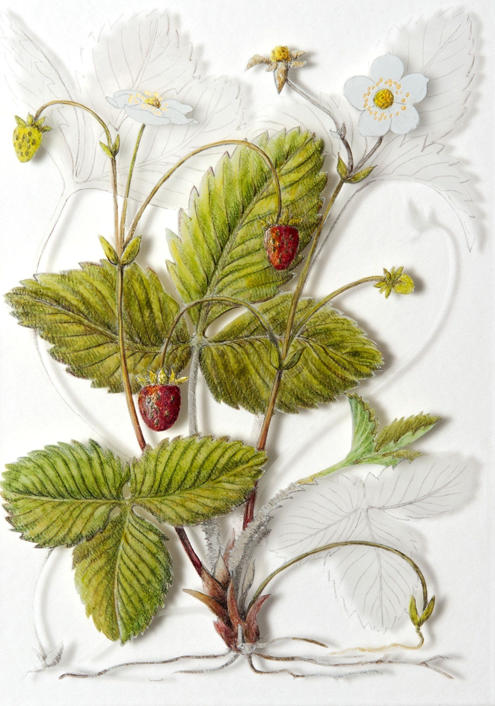 'Strawberries', verre églomisé with gold leaf, 21x15 cm (panel 42x39cm), sold