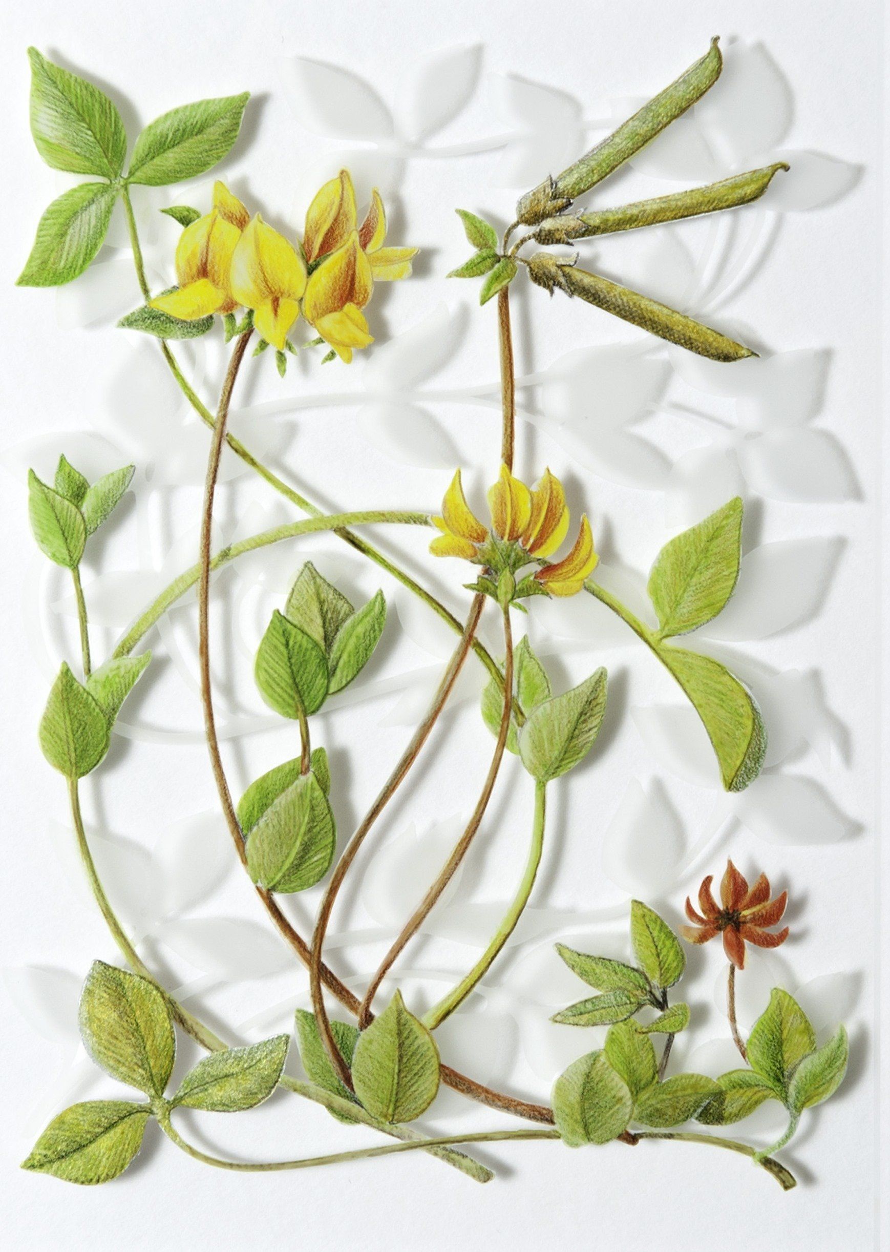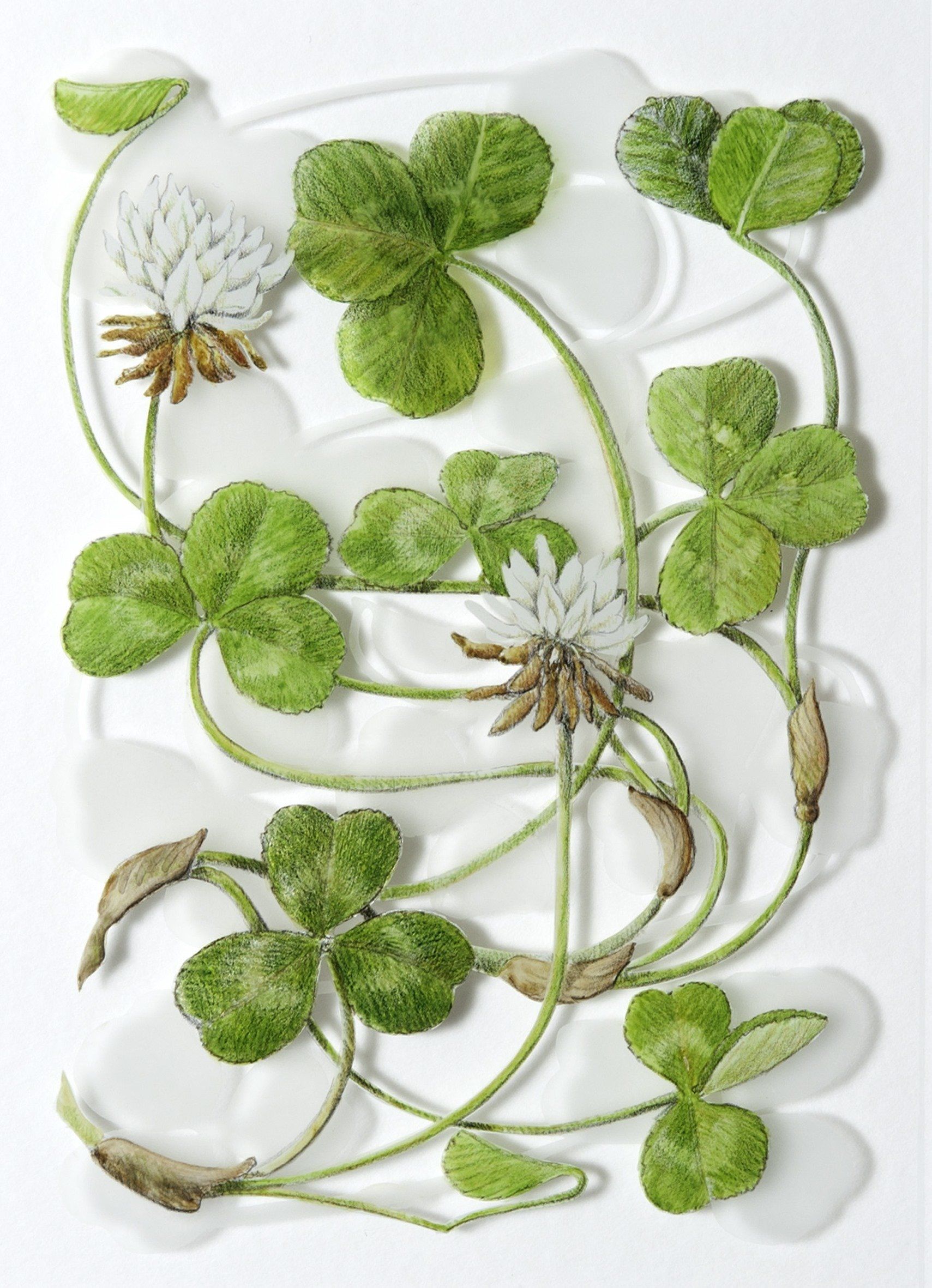 'White Clover', verre églomisé with gold leaf, 21x15 cm (panel 42x39cm), sold