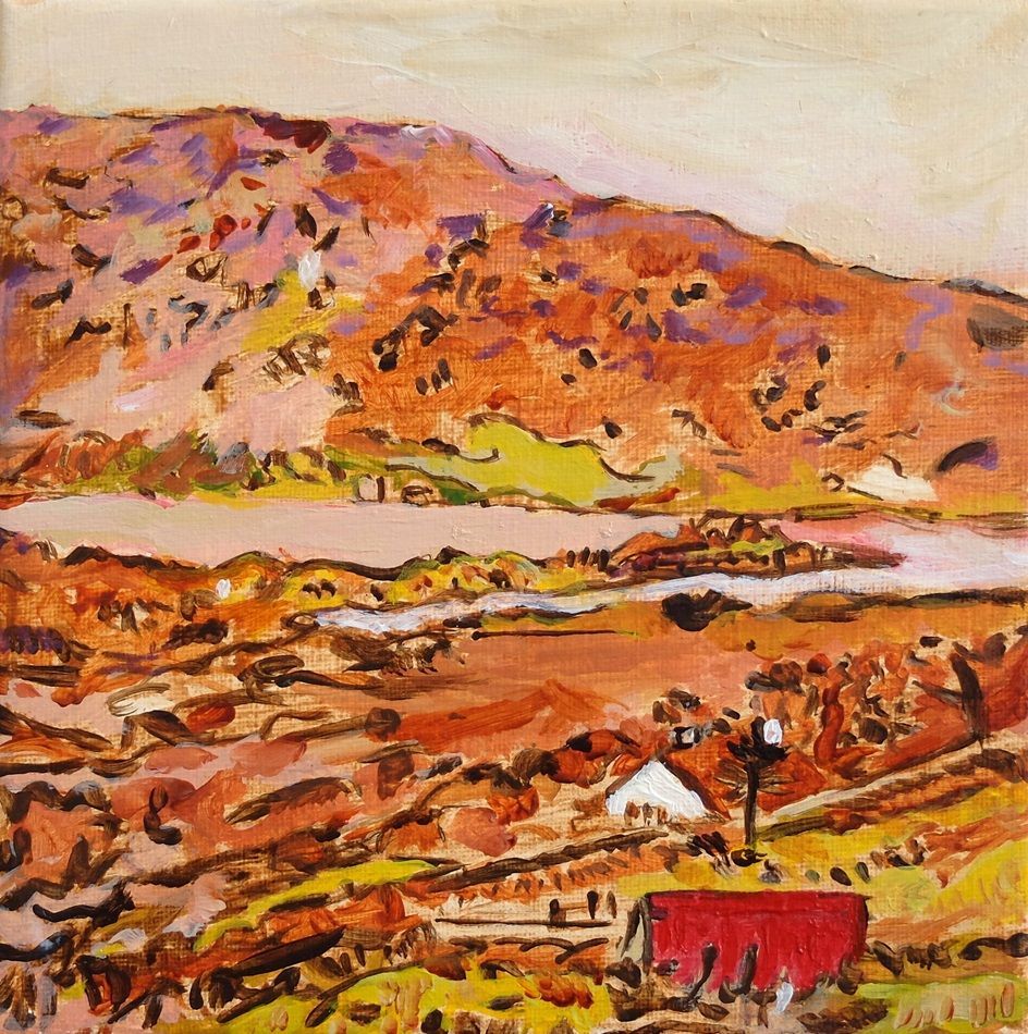 In this exhibition, Smith focuses on her lived experience as a mother in self-portraits which reflect an image of motherhood as a state of mind that is not incompatible with creativity. Gairdín Rós comprises 7 paintings made during the first four years of motherhood. They explore portraiture, performance in the domestic realm, windows to new perspectives, the body, and inherited landscapes. Smith’s self-portraits juxtapose domestic objects with landscapes that recall significant places in her life, recreated from family photographs of places in the West of Ireland. Characterised by thick lively daubs of paint and flowers collaged into the paint, the paintings convey a sense of wonder in nature. The square window frame-like canvases offer windows to the world of the artist-mother, revelations of the paradox of motherhood and life as an artist.