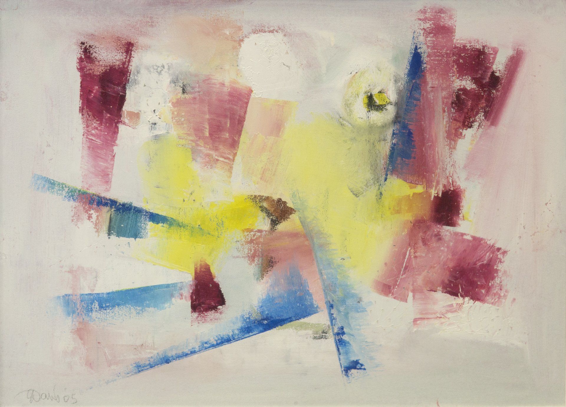"Gerald Davis is a leading light in Irish contemporary painting. His abstracts ostensibly engage with landscape but also involve the human figure, or representations of the human that hint ambiguously at landscape images recalling the Celtic idea of the marriage between landscape and mortality. The use of painting and colour convey an intriguing sense of elements in flux. Restrained magic seems to be at work, and the tantalizing notion of other images suggested behind and within those Davis offers us." Fred Johnston, Sunday Times, 1997