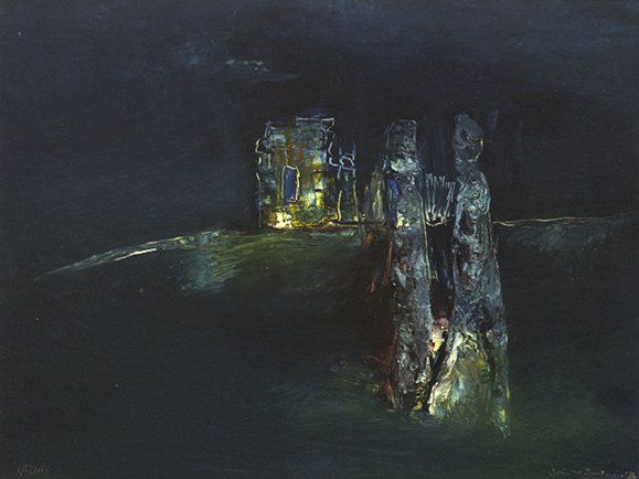 "The strange, dark, ancestral spectres which inhabit the constantly changing light of the landscapes of Gerald Davis, remind one of those tragic-comic voyagers who travel the work of Jewish artists in whatever idiom. Davis remains, in the amazing light of Ireland, indelibly Jewish, and his individual combination as Dublin as Ulysses and as Jewish as Bloom, is singularly at home in the important new movement which has manifested itself in Irish art during the last few years. There Davis's contribution as impressario is as impressive as his work as a painter; and again, the synthesis of talents is unique."Wolf Mankowitz