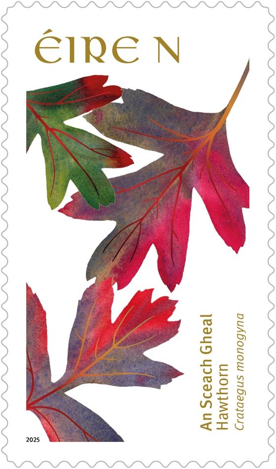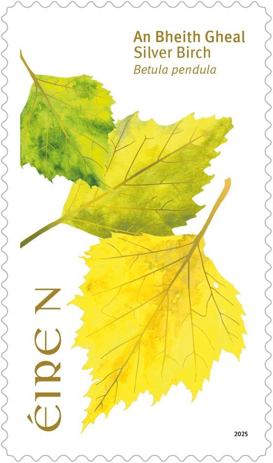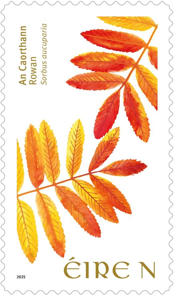 In their September Quarter newsletter The Collector 3/25, An Post's philatelic services explained that this "set of tree-themed stamps features leaves from three of our most renowned native species: silver birch, rowan (mountain ash) and hawthorn, capturing their characteristic forms and vivid autumn shades".