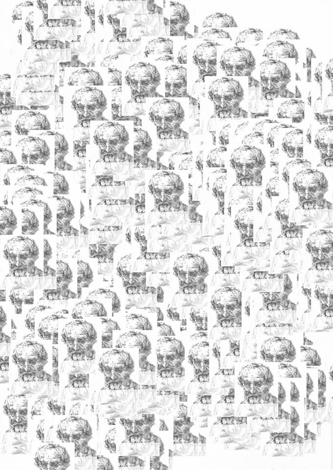 Eoin Mac Lochlainn. It began as a virtual project as the artists were invited to create an initial image which was then emailed on to the next artist in the group. The second artist responded by working over it and then emailing it on to the third artist who also responded and passed it on. The process continued until each of the ten artists had worked on each of the ten images. It was a creative and engaging experience for the artists involved, each gaining a lot from encountering the varied working methods and creative processes of the other artists.