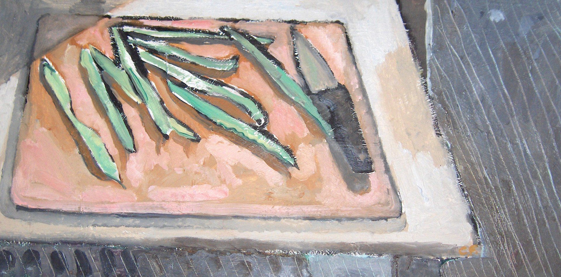 Conrad Frankel, 'Green Beans with Knife', oil on board, 31x62cm