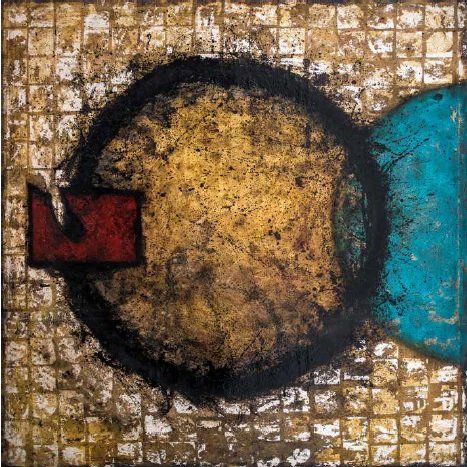 'Moving ahead', mixed media and gold leaf on canvas, 150x150cm, sold