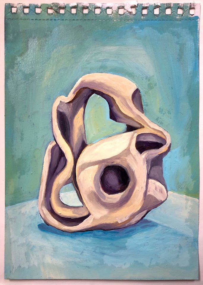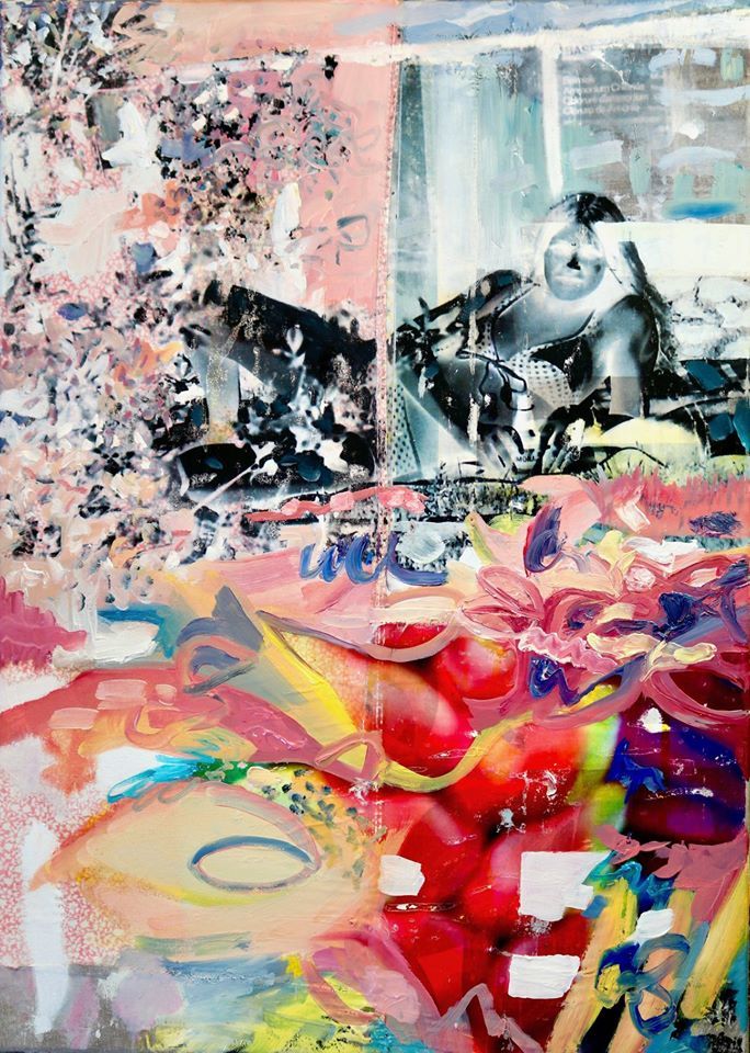 Wawra's works are a play on endurance, staying power as well as sitting and flesh; with an autobiographical and associative approach. This is translated into different forms of expression: her characteristic layered mixed media pieces as well as drawings, oil painting, ceramics and sculpture.
