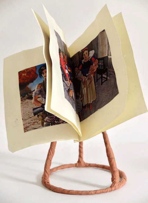 The starting point for this new body of work is Smith’s fascination with stories of women in the news media concerning attacks, catastrophe, conflict, depression, desperation, domestic acts, loss, love, moving on, murder, resilience, survival and willpower. She is intrigued by how certain mass media stories about women resonate for women as echoes of their own lives. Women’s stories interconnect like the branches of a tree or a woven tapestry or the thread count in a blanket. Smith is drawn to the crisis in each story by how it is unpacked, as if each woman is unfolding clothes from a suitcase after a journey from girlhood to womanhood and beyond. Smith appropriates news photographs depicting these women, meshing them into paint, photo collages, readymade sculptures, annotated sketchbook drawings, and collages.